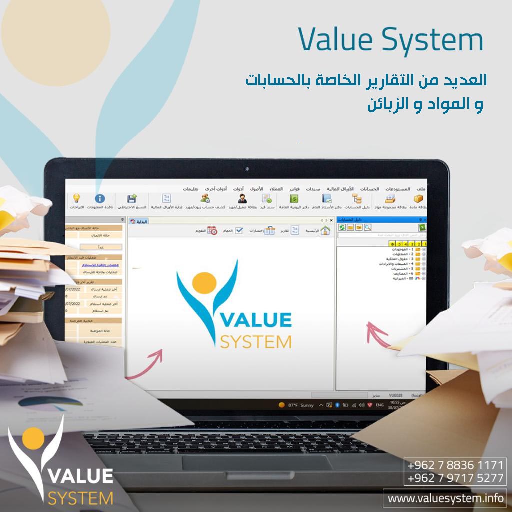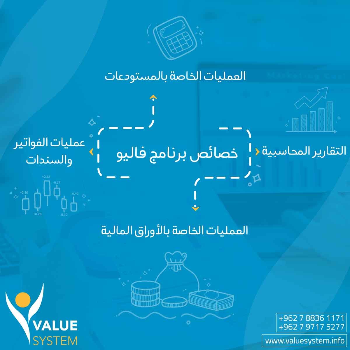 يعتبر برنامج فاليو أداة محاسبية يمكن استخدامه من قبل المختص وغير المختص بشكل عام حيث يتميز بسهولة في الاستخدام في معالجة مختلف العمليات الحسابيّة و يخدم هذا البرنامج منشآت الأعمال المختلفة، مع تنوع كبير في إمكانياته و خياراته، كما و يعمل البرنامج على الإصدارات المطوّرة من نظام ويندوز حيث يتميز بسهولة الاستخدام عند إدخال البيانات أو البحث عنها أو طباعتها