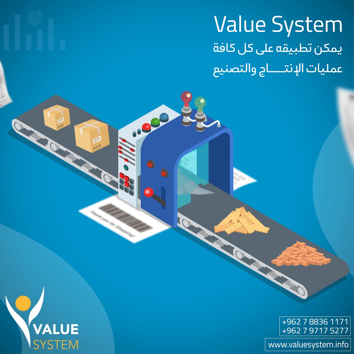 صمّم نظام التصنيع ضمن برنامج فاليو لتلبية احتياجات المصانع التي يعتمد إنتاجها على عمليات التصنيع للمنتج الواحد، قد يكون المنتج المراد تصنيعه منتج نهائي أو منتج نصف مصنّع، حيث يستخدم هذا النظام في الكثير من عمليات التصنيع المطلوبة للوصول إلى منتجات معينة من خلال دمج مادتين أو أكثر للحصول على مادة واحدة، و ذلك من خلال تحديد كميات للمواد الأولية و كمية المادة المراد تصنيعها